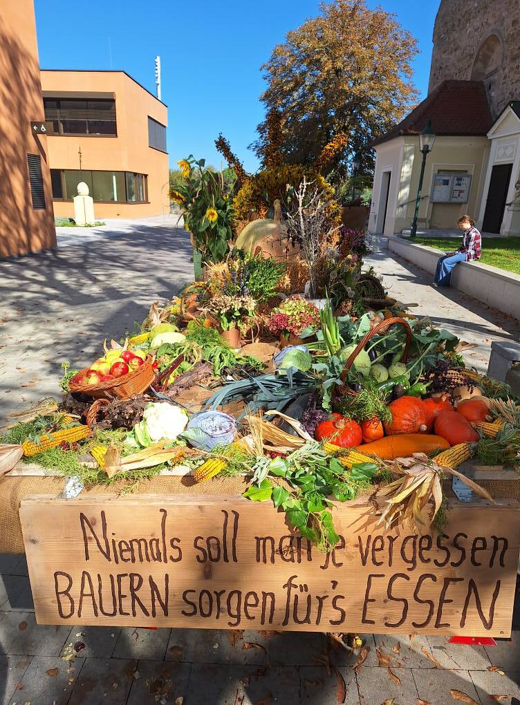 Das Erntedankfest wird von der Dorfgemeinschaft Pischelsdorf gestaltet. Das Schmücken der Kirche muss heuer mit einer Hochzeit koordiniert werden,