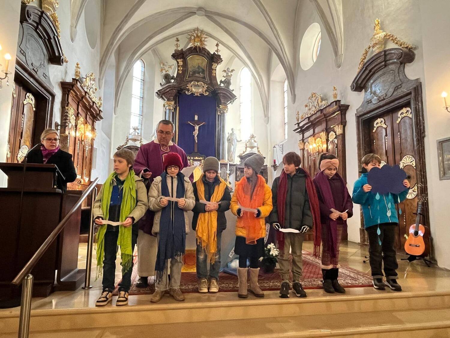 Bei der gut besuchten Familienmesse am 2. Sonntag der Fastenzeit, stellen die Kinder das Projekt