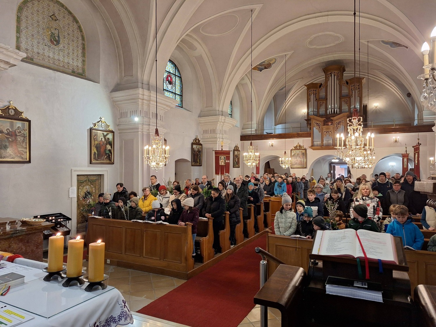 Den Kreuzweg beten zwölf Pfarrangehörige mit. Die Aufteilung der Lektoren auf alle Mitbetenden bewährt sich.