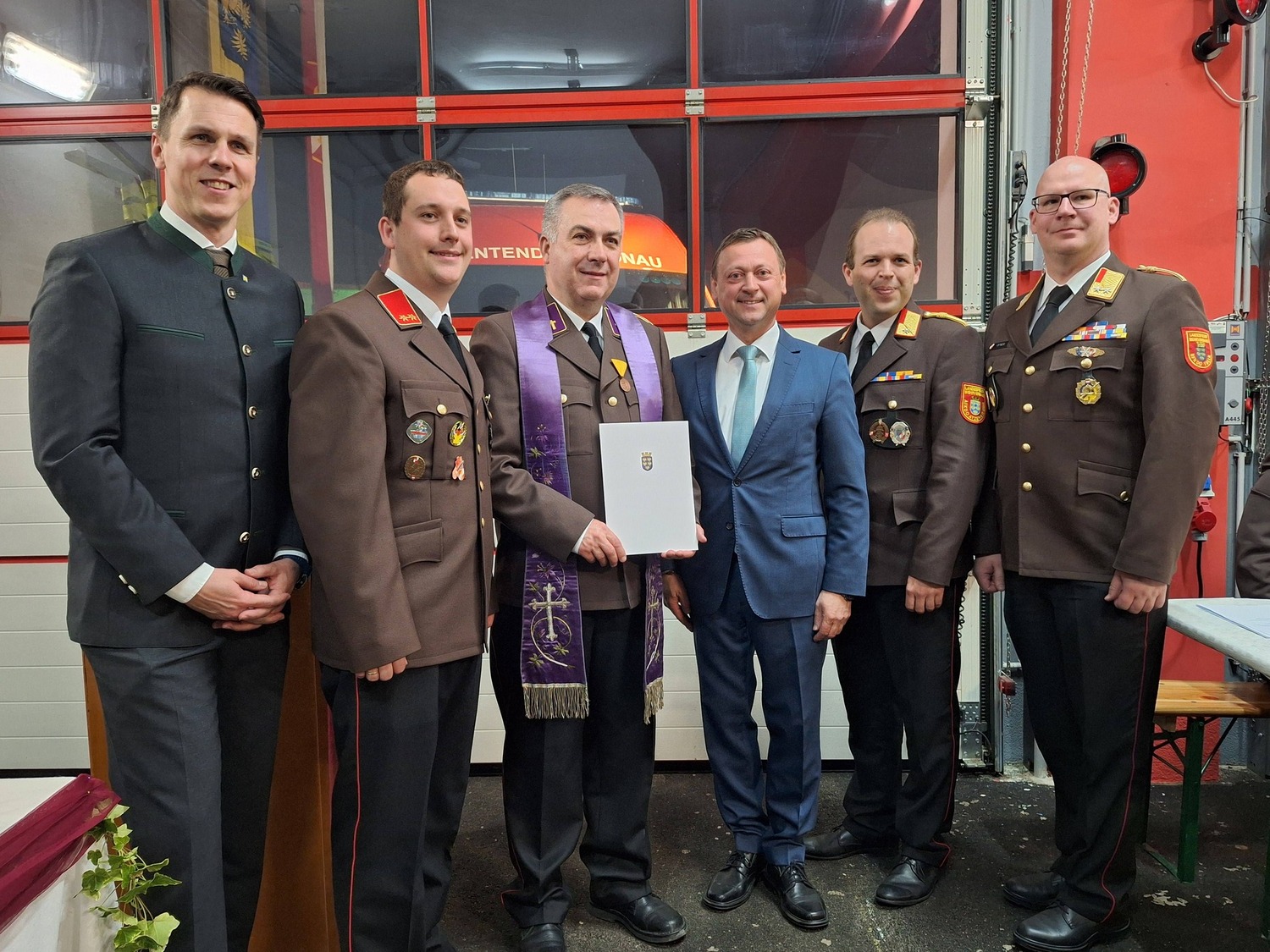 Im Rahmen dieser Messe wird Feuerwehrkurat Sanocki für seine 25-jährige Tätigkeit ein Ehrenzeichen verliehen.